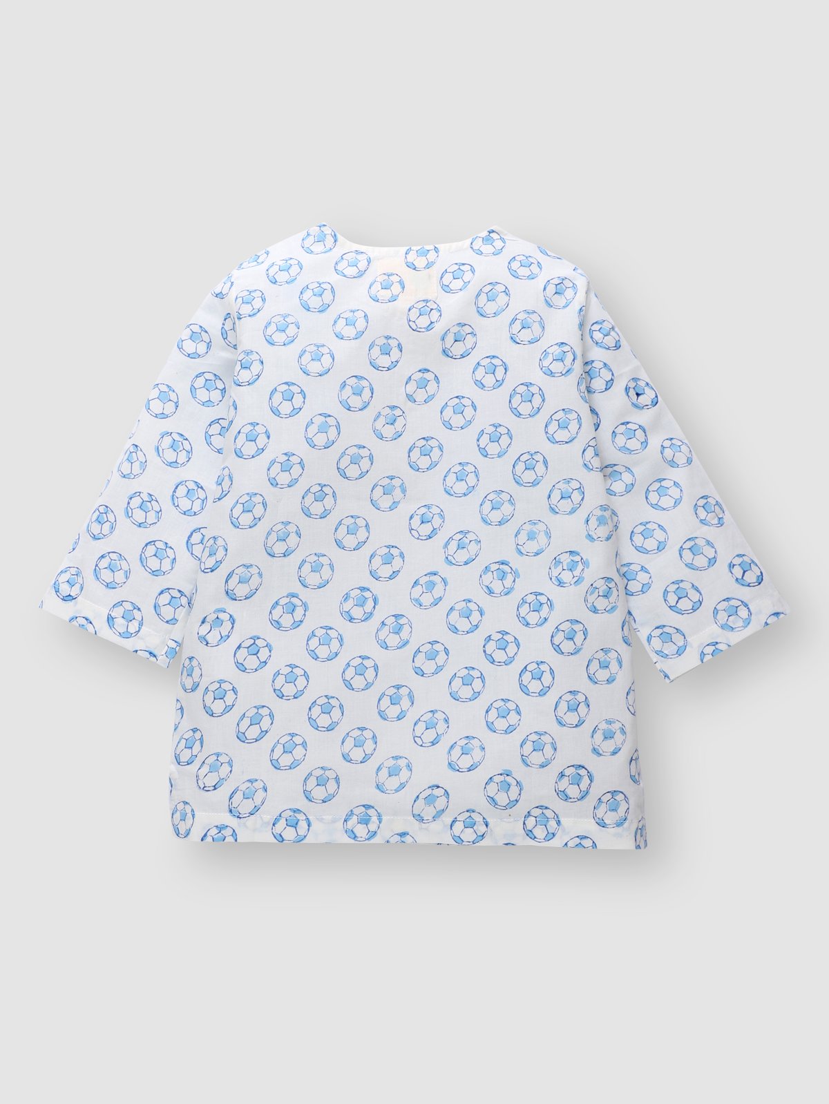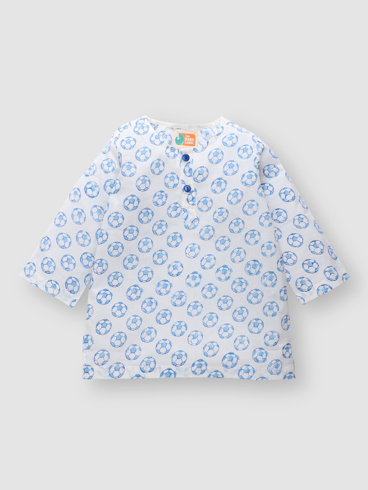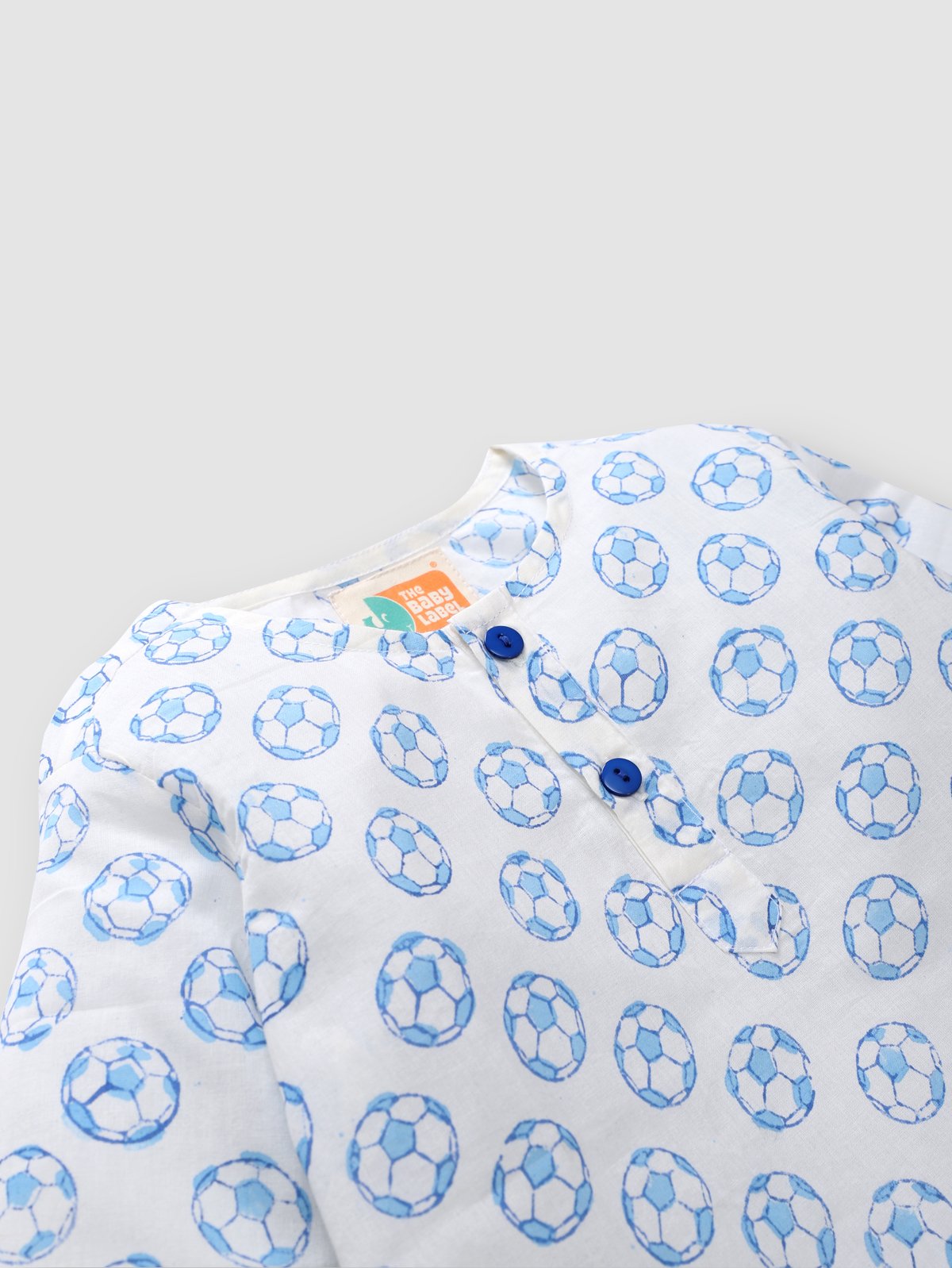 Your little football fan will absolutely love our hand block printed pajamas – ideal for those summer nights lounging at home or snuggled up in bed or for play. These pajamas will keep your child comfortable all through the year. Includes 100% cotton kurta with buttoned placket and a long elastic waist pant.